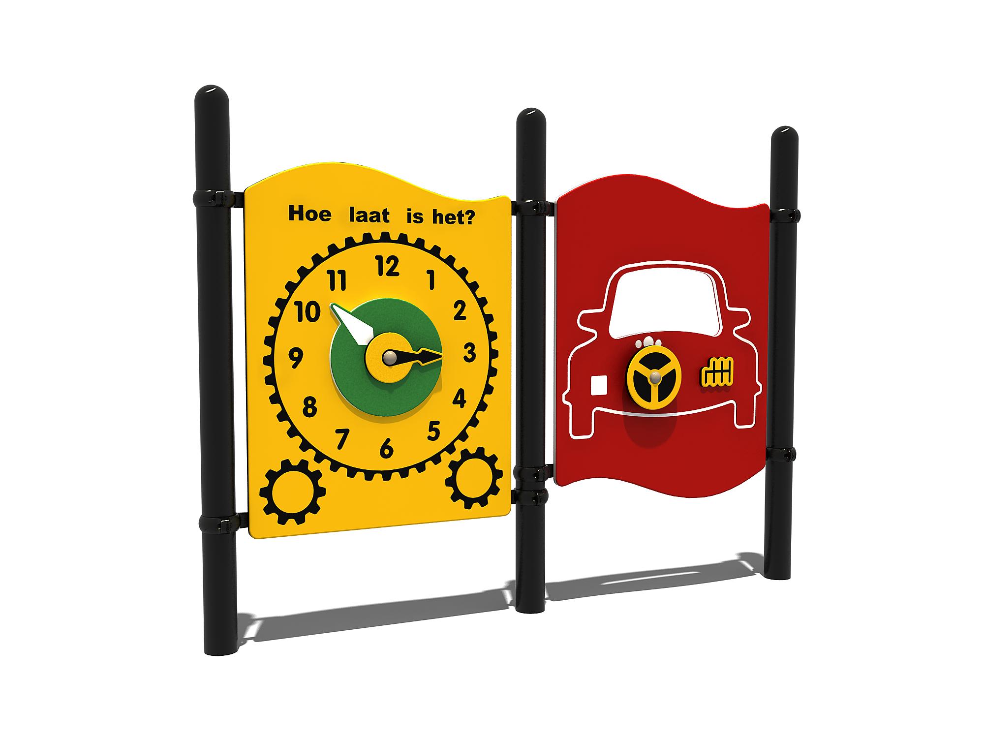 Deze wanden kunnen los geplaatst worden maar ook als combinatie met een speelhuis of ander speeltoestel. De onderhoudsvrije speelelementen uit de kleurrijk en duurzaam serie van TnT Speeltoestellen bestaan uit zwarte staanders van gepoedercoat staal en kleurrijke borden van PE-polytheen. Je kunt ook kiezen voor andere spelpanelen of deze wanden (op een ander tijdstip) uitbreiden met meer spelpanelen zoals een klokpaneel, weerpaneel of muziekpaneel. Het zijn goedkope maar zeer educatieve elementen op een schoolplein. Leren en spelen komen op deze manier samen.