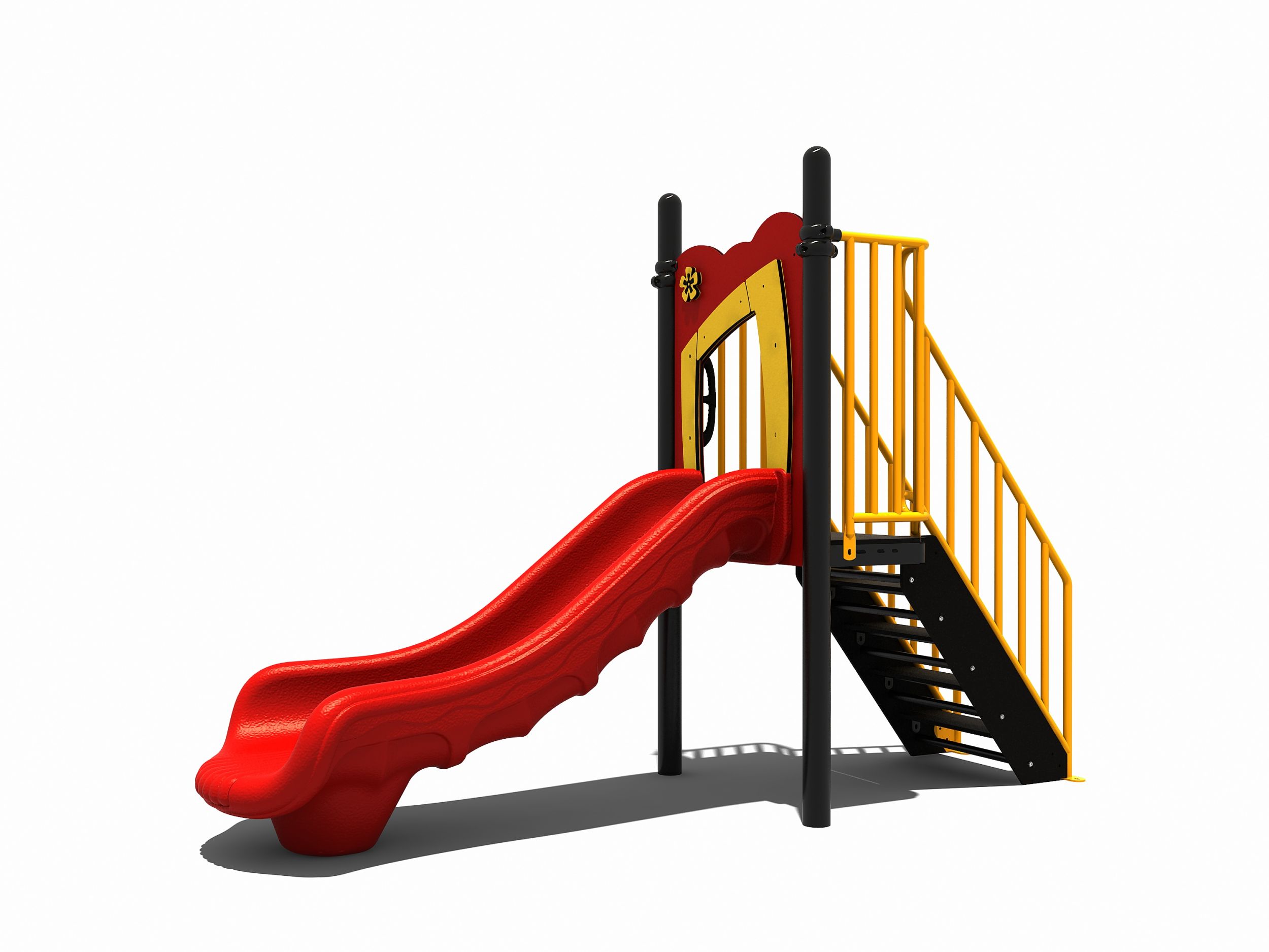 Waarom deze glijbaan zo geschikt is voor de kinderopvang? Sowieso omdat glijden een van de basisvaardigheden voor de motorische ontwikkeling van kinderen is. Daarnaast is de uitvoering van deze professionele glijbaan aangepast aan de leeftijdsgroep. Dit speeltoestel heeft een stabiele trap naar het platform. Deze stevige metalen trap is voorzien van leuningen om aan vast te houden als de jonge kinderen naar boven klimmen. Dit geeft een veilig en beschermd gevoel. Het platform is bewust laag gehouden en de kunststof glijbaan heeft aan beide zijden een ruime opstaande rand om jonge kinderen veilig naar beneden te laten glijden.