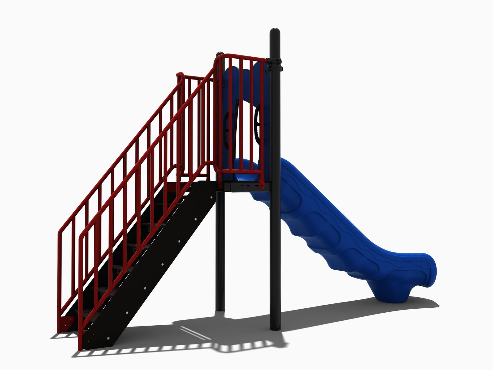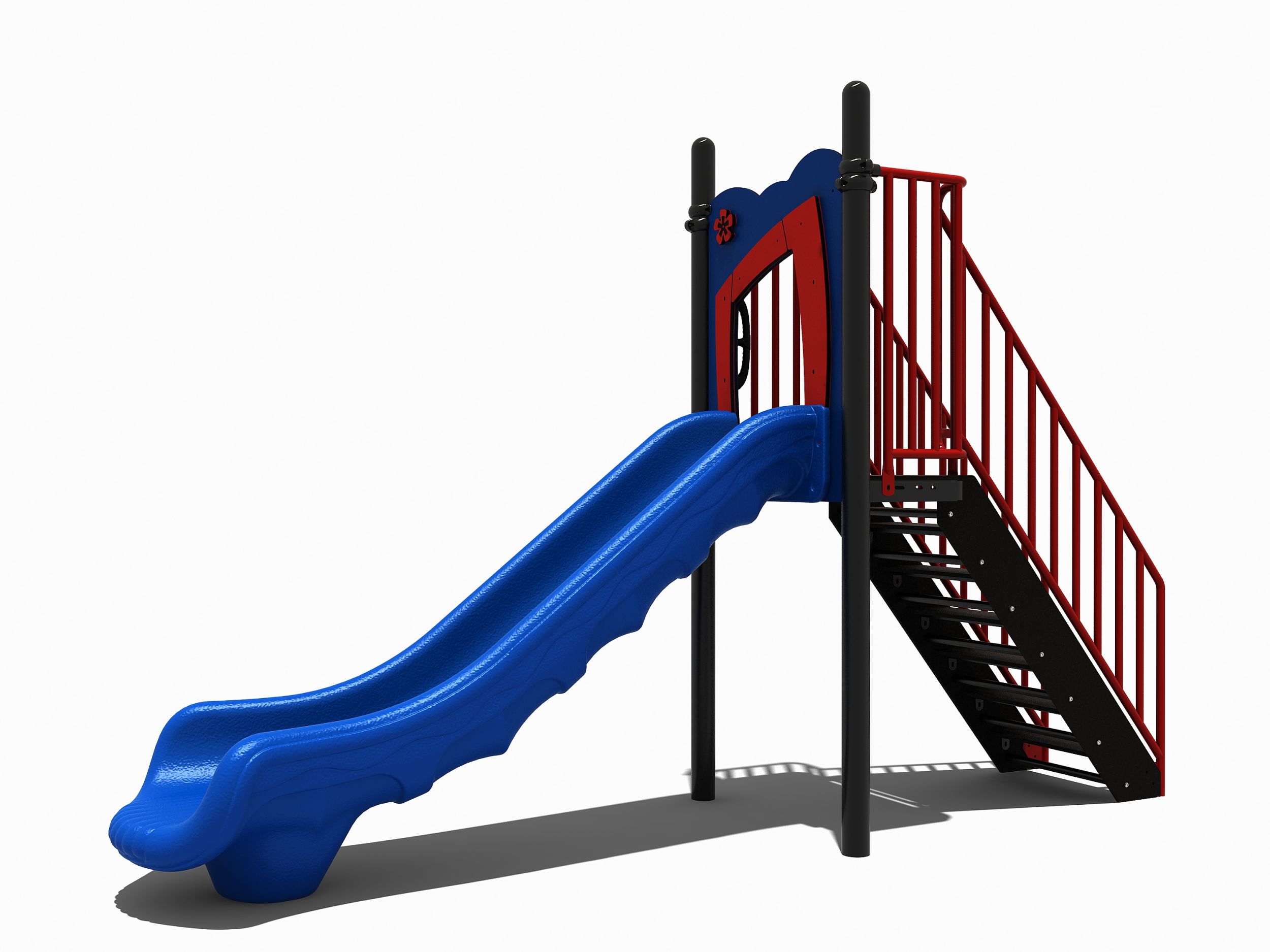 Je vindt in ons assortiment vrijstaande glijbanen in verschillende hoogtes. Deze glijbaan met trap heeft een platform van 120 cm. Dit is een mooie hoogte voor jonge kinderen om te leren glijden. Deze glijbaan past dan ook perfect op een speelplek bij een kinderdagverblijf of op het schoolplein bij de lagere groepen van de basisschool.