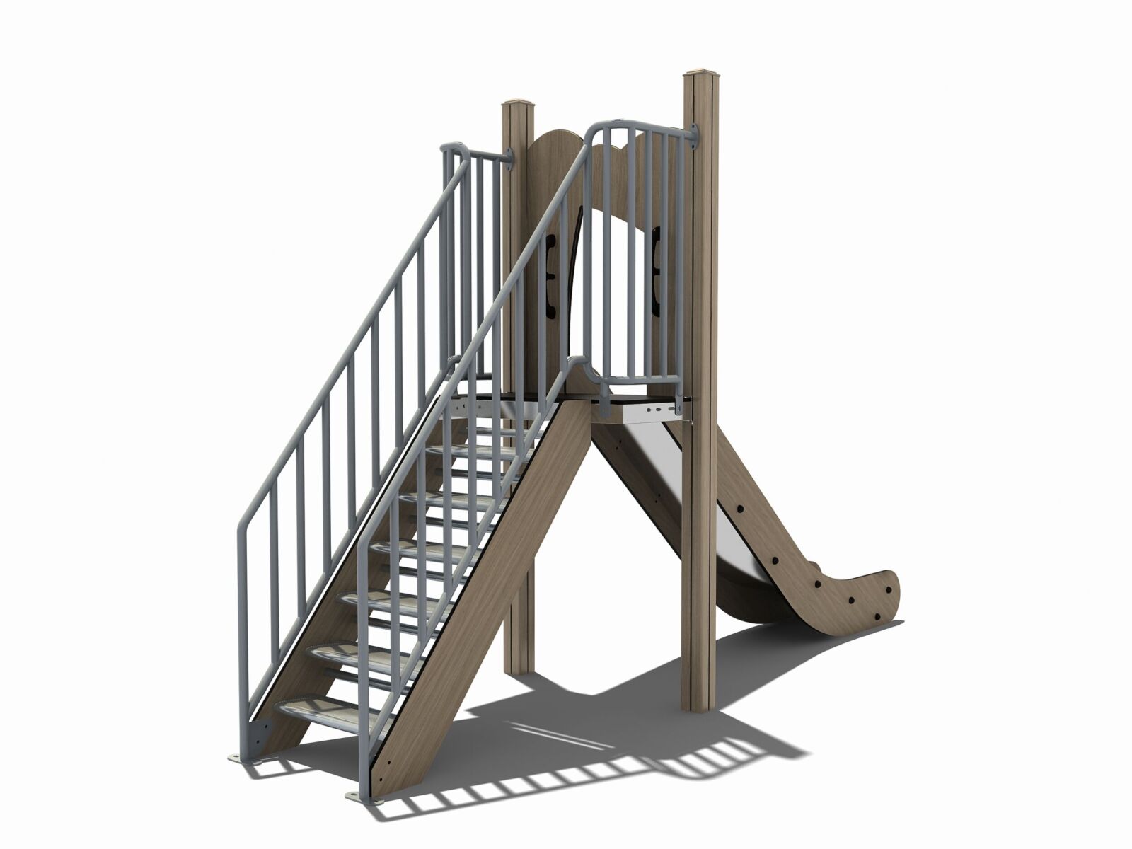 Het ideale speeltoestel voor alle leeftijden, deze professionele glijbaan is nu ook stijlvol uitgevoerd in de Nature line look met de uitstraling van hout en dit hebben we gecombineerd met rvs accenten en een roestvast stalen glijbaan.
