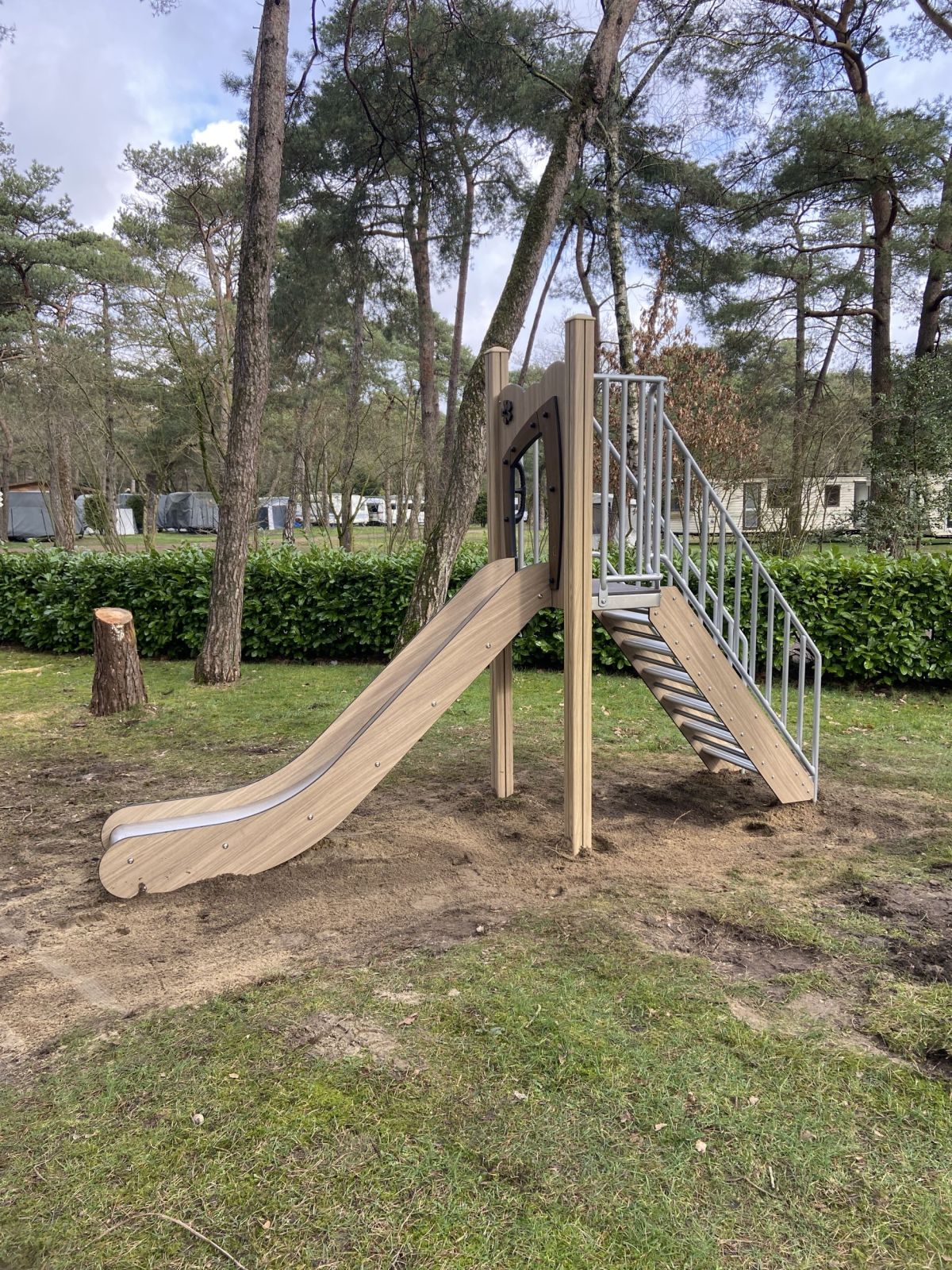 Deze glijbaan heeft een stevige trap naar het platform. De trap heeft veilige leuningen dus ook jongere kinderen kunnen alleen naar boven klimmen. De rvs glijbaan met een hoogte van 120 cm heeft verhoogde zijkanten voor een veilige glij naar beneden. Het is een ideale glijbaan voor peuters en kleuters op een kinderdagverblijf of leerlingen van de lagere groepen van de basisschool. Door de natuurlijke kleurstelling past deze ook uitstekend in een groene omgeving zoals bijvoorbeeld een camping of ander recreatiepark.
