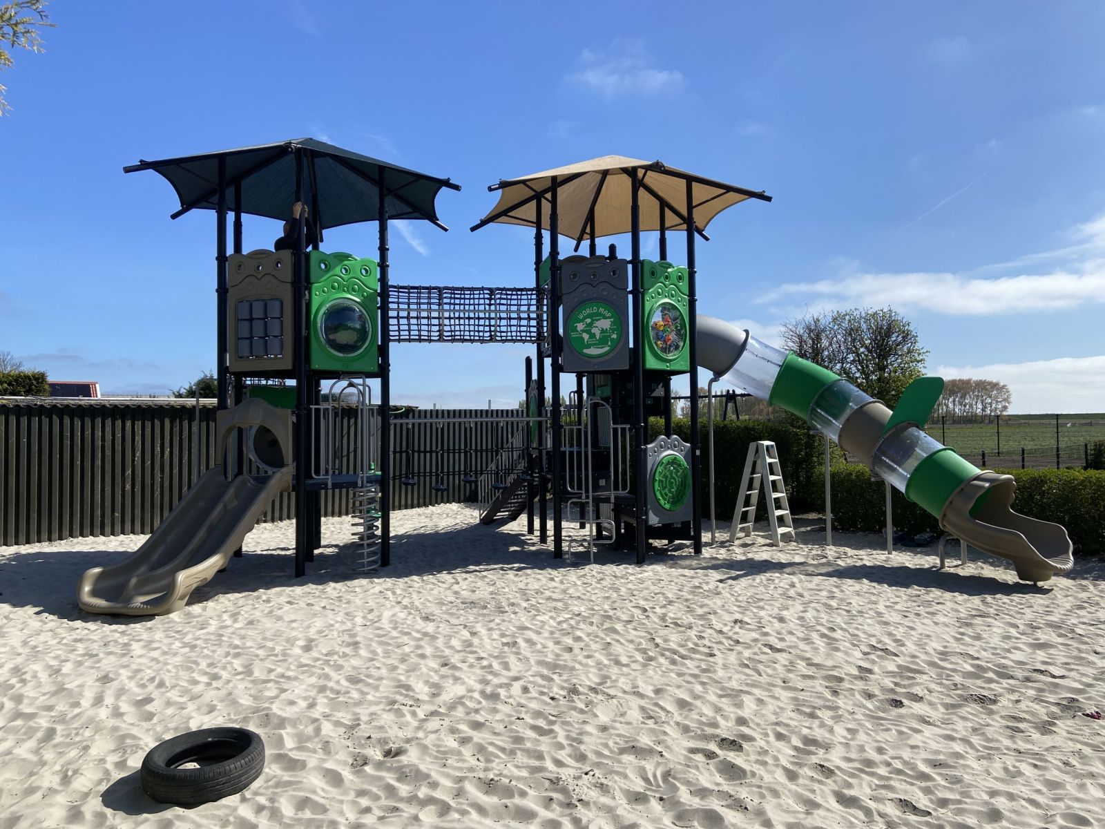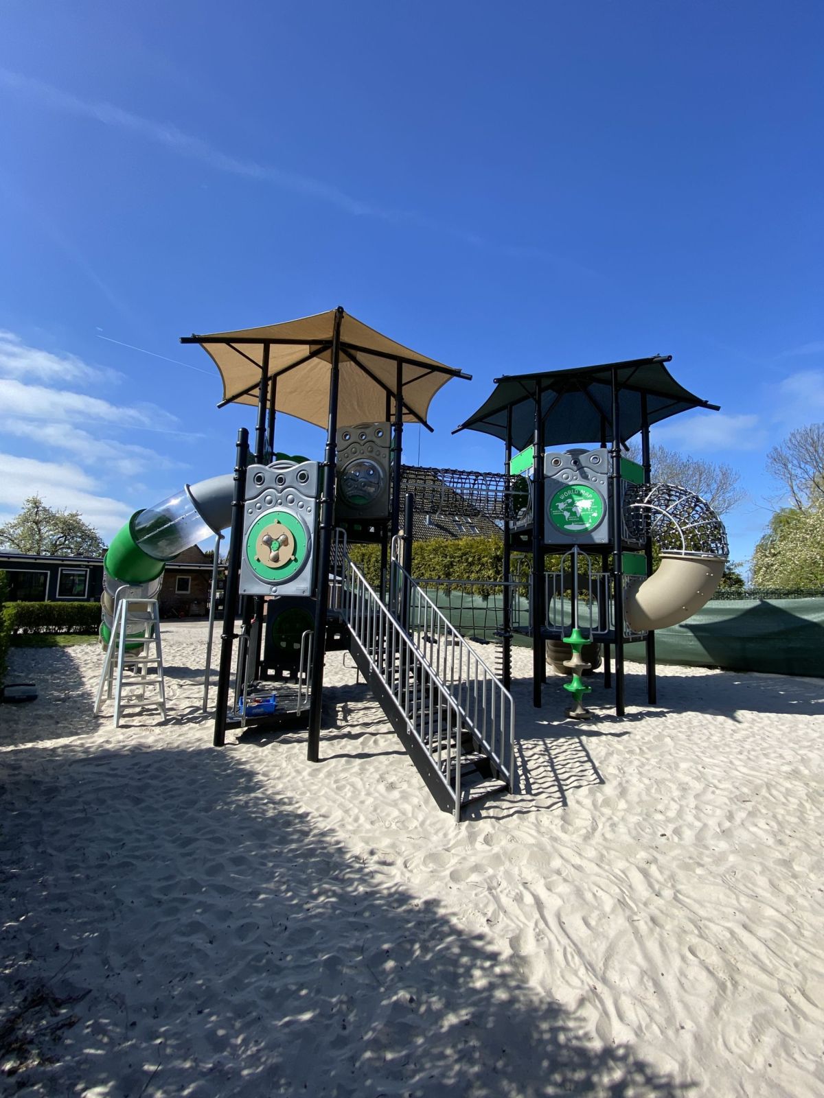 Het speeltoestel heeft een moderne vormgeving. De twee nettunnels zorgen voor een open karakter en doen ietwat futuristisch aan. Voor de meeste kunststof onderdelen is HPL gebruikt, dit geldt ook voor de platformen die als extra zijn voorzien van een anti-sliplaag. De trappen zijn van geribbeld aluminium om uitglijden te voorkomen. Met het gebruik van deze materialen maken wij onze speeltoestellen zo duurzaam en veilig mogelijk en geschikt voor intensief gebruik. De speeltoren is speciaal ontwikkeld voor campings, recreatieterreinen, vakantieparken, scholen en speelpleinen in de openbare ruimte. Lees hier meer over onze vernieuwingen.
