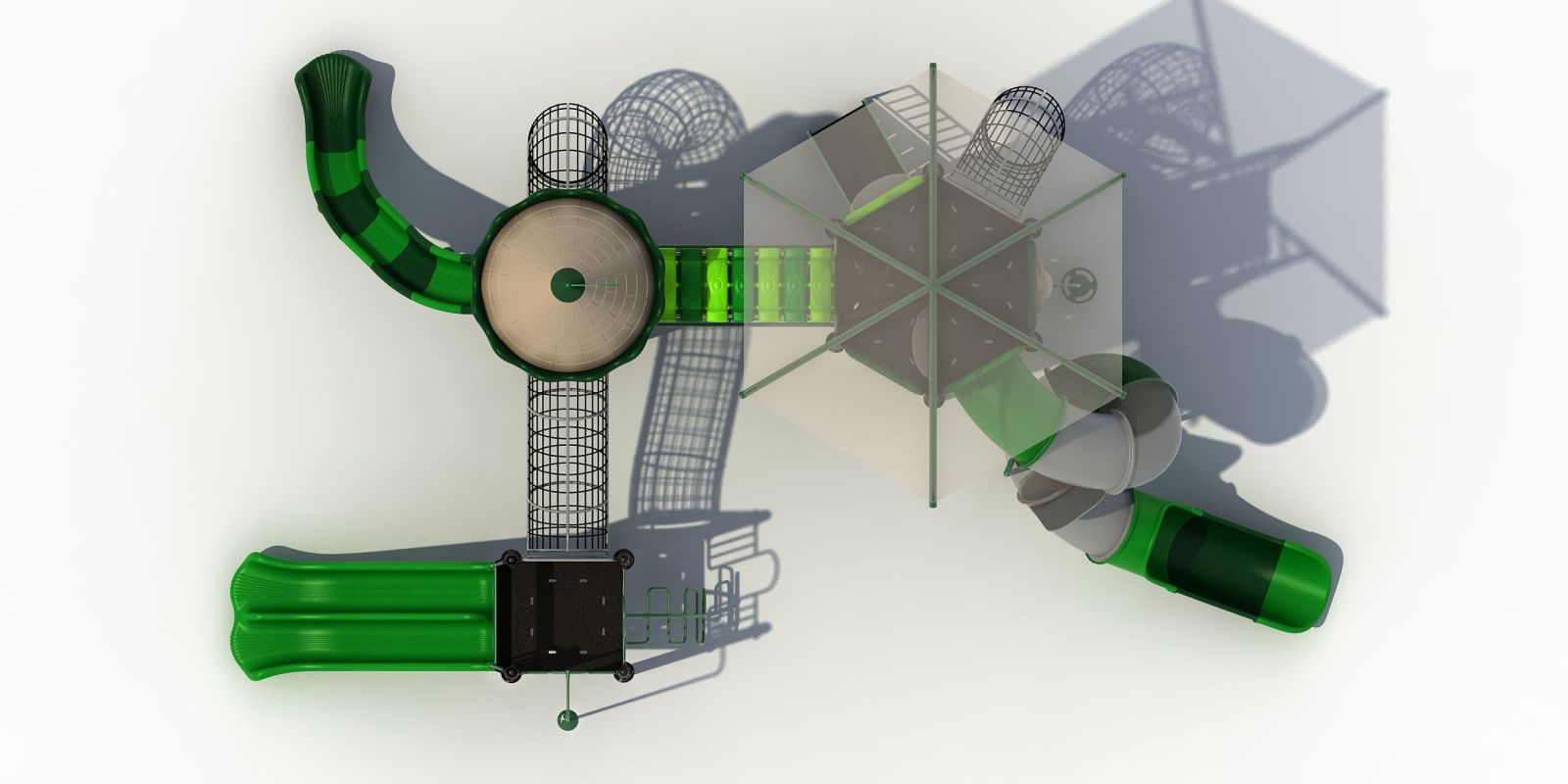 Nieuw in dit speeltoestel zijn de klimbuizen. Het frame is gemaakt van gecoat en gegalvaniseerd metaal. De netten/touwen die erin verwerkt zijn, zijn versterkt met een staalkern. Het open karakter en de vormgeving zien er ietwat futuristisch uit.