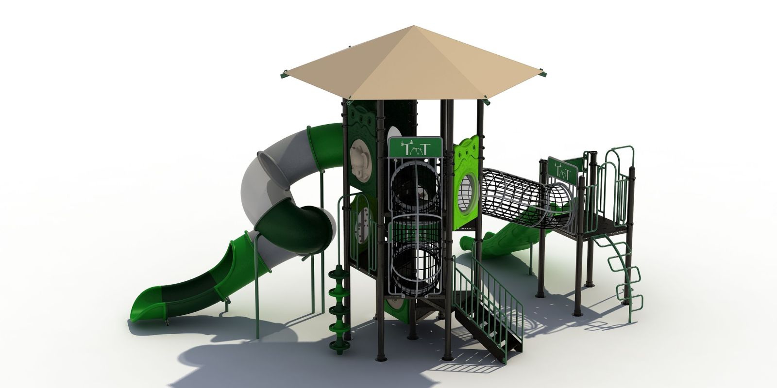 Deze speeltoren met buisglijbaan (C-523) is de middelste uitvoering van dit speeltoestel. We hebben deze ook ontworpen als alleenstaande speeltoren met een grote buisglijbaan (C-521) en in een hele grote uitvoering met een derde speeltoren met puntdak en nog meer speelelementen (c-525). Uiteraard is elk speeltoestel naar eigen wens aan te passen en verder uit te breiden in onze TnT 3D-ontwerper. Hierin kun je ook de kleurstelling van speeltoestel aanpassen.
