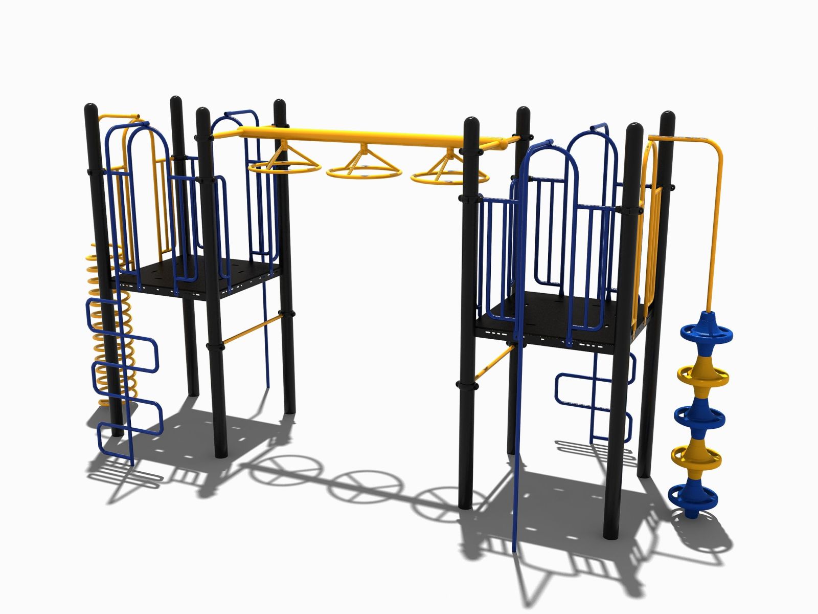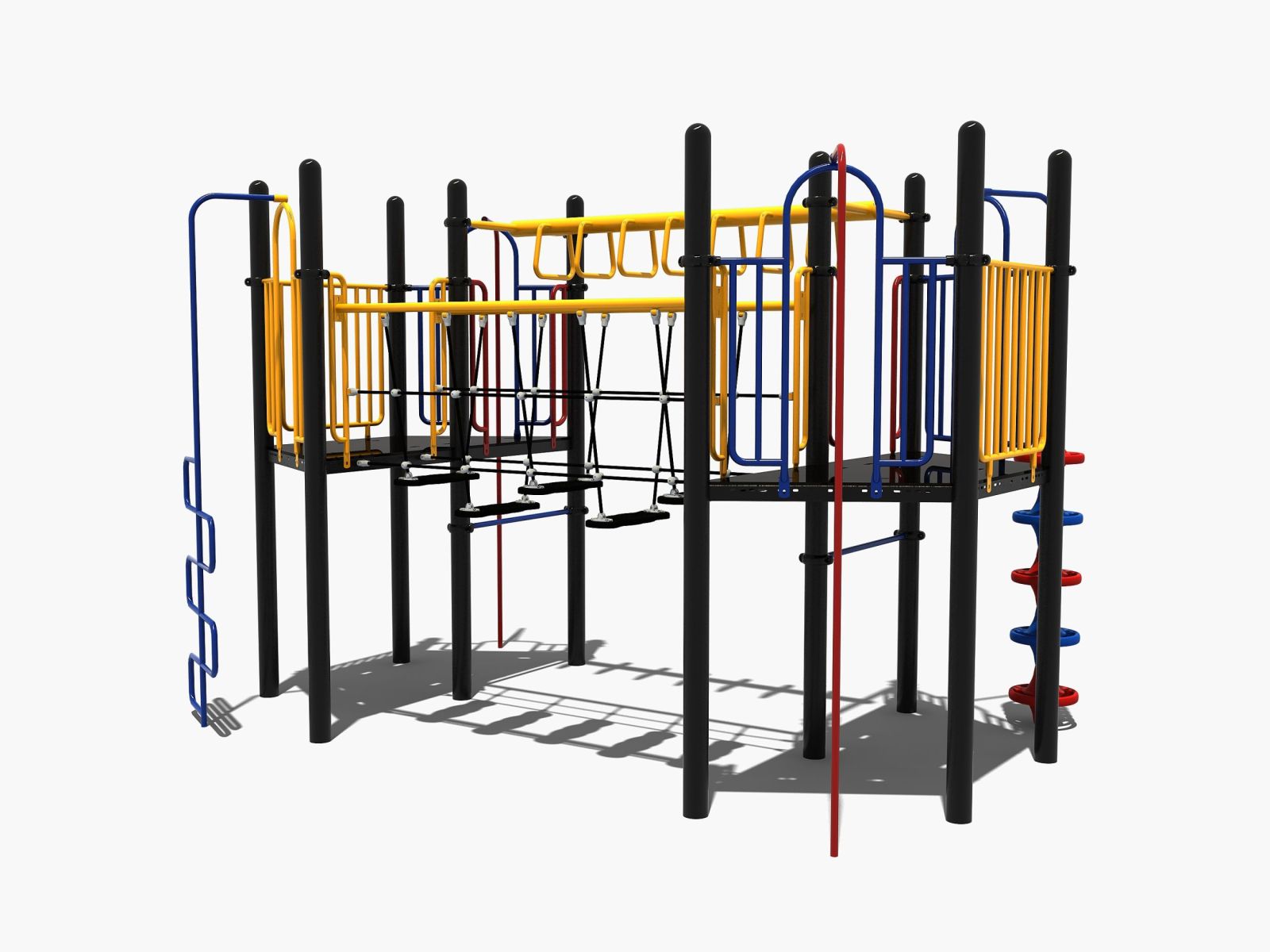 Dit speeltoestel is in samenwerking met een klant ontwikkeld, getekend en geproduceerd. De vraag was om een speeltoestel te maken dat veilig is voor de groepen 1 en 2 van de basisschool maar ook nog voor groep 3 en 4 voldoende uitdaging geeft.