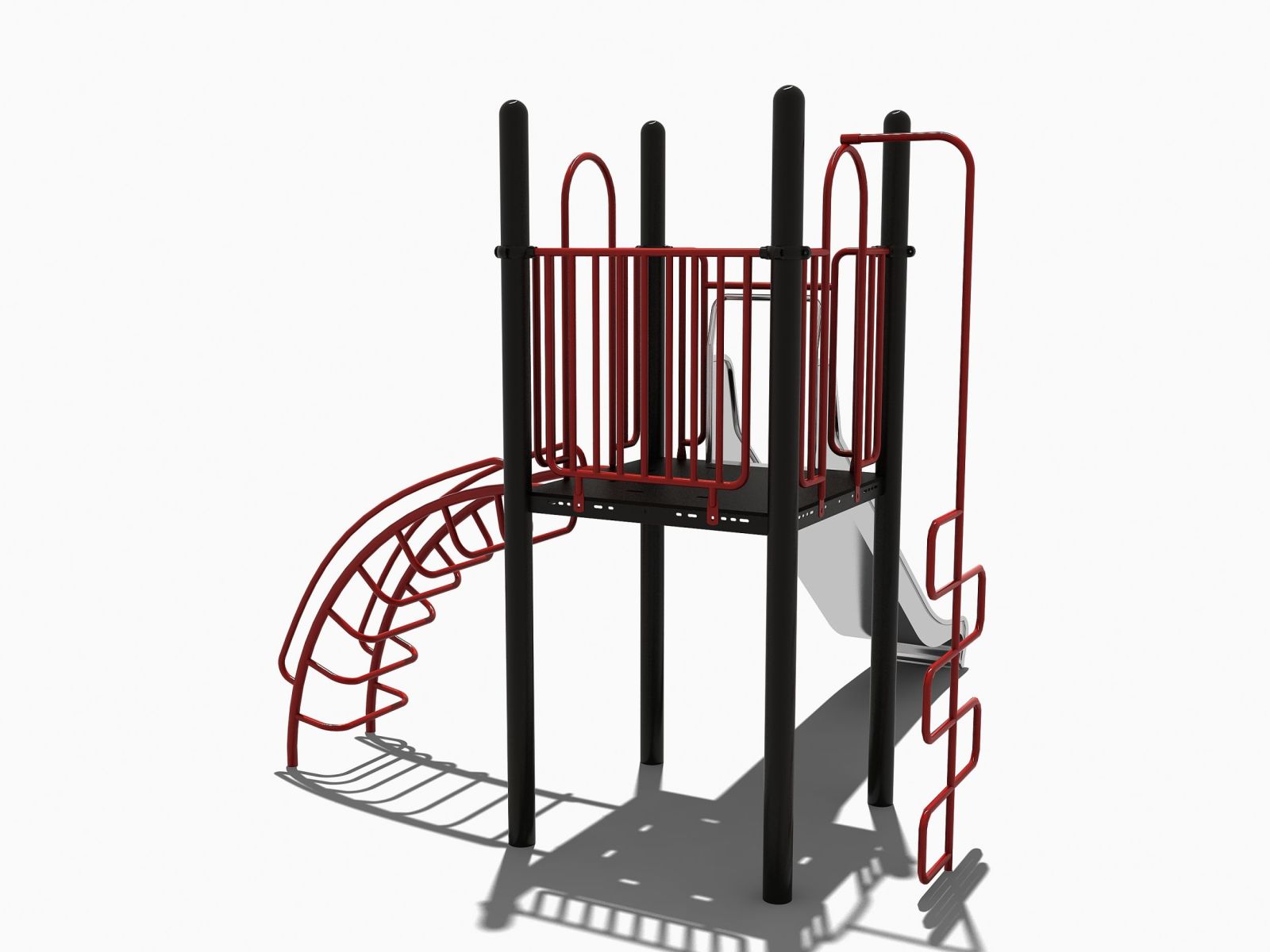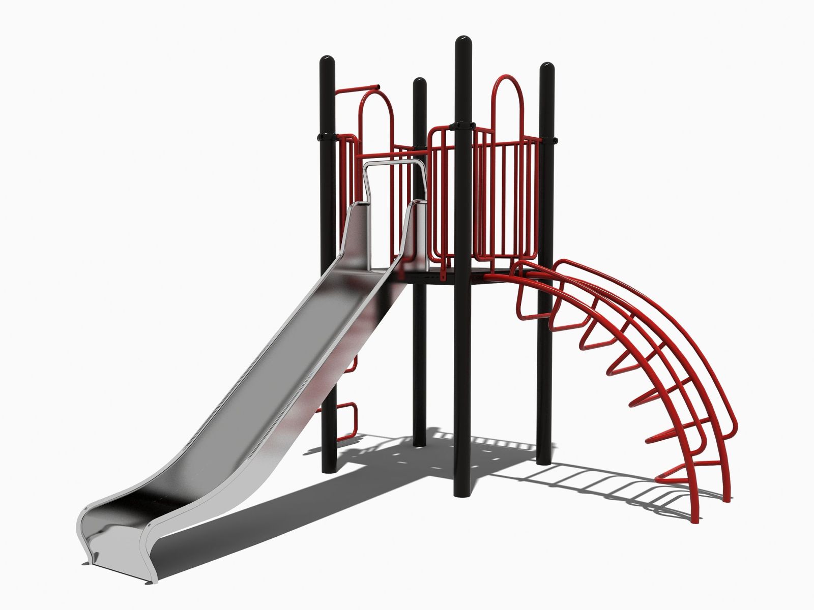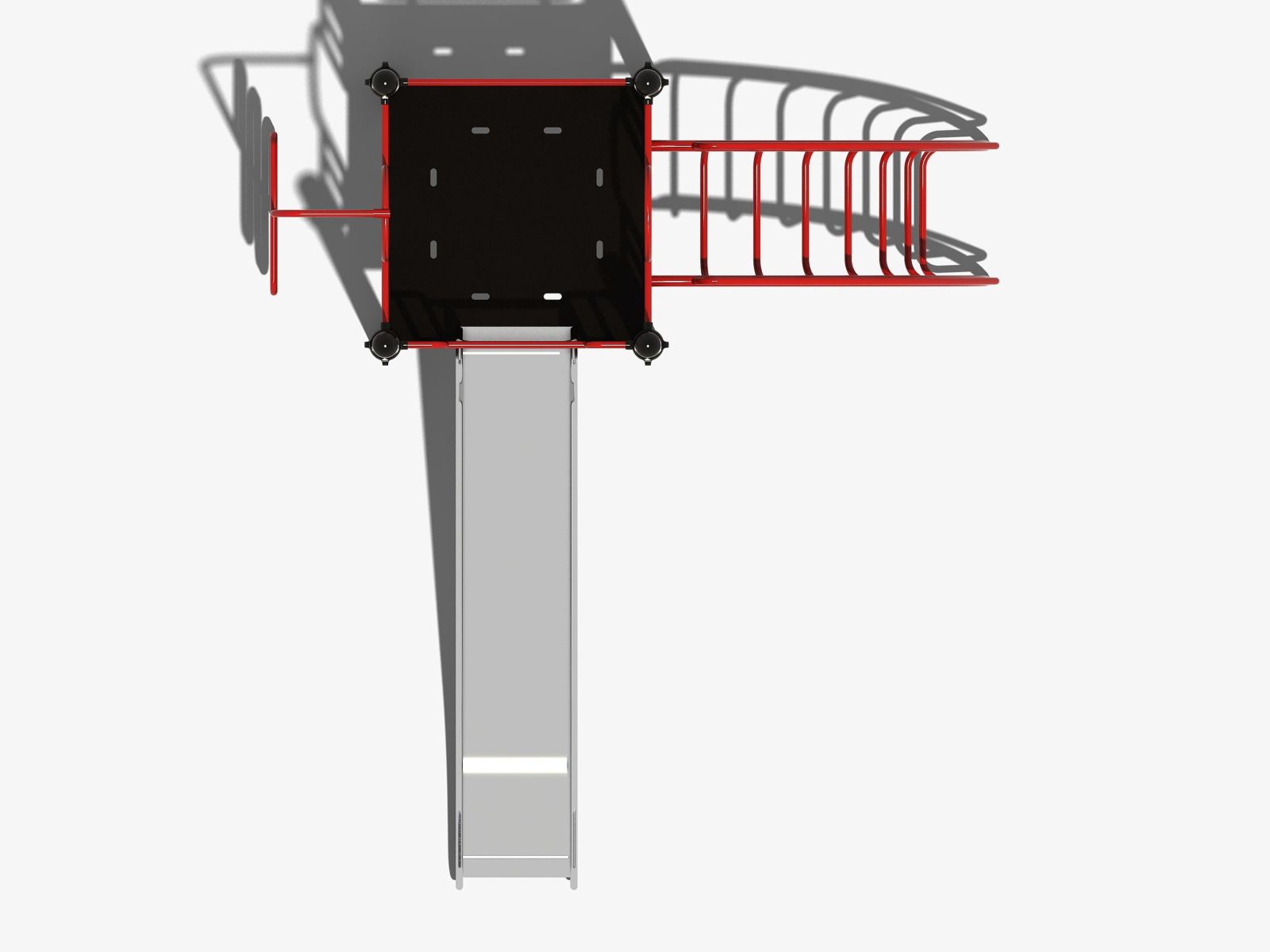 Dit gecertificeerde speeltoestel uit de metaallijn met rvs glijbaan is compact qua afmeting maar robuust qua vormgeving. Een professionele glijbaan geschikt voor iedere plek in de openbare ruimte.