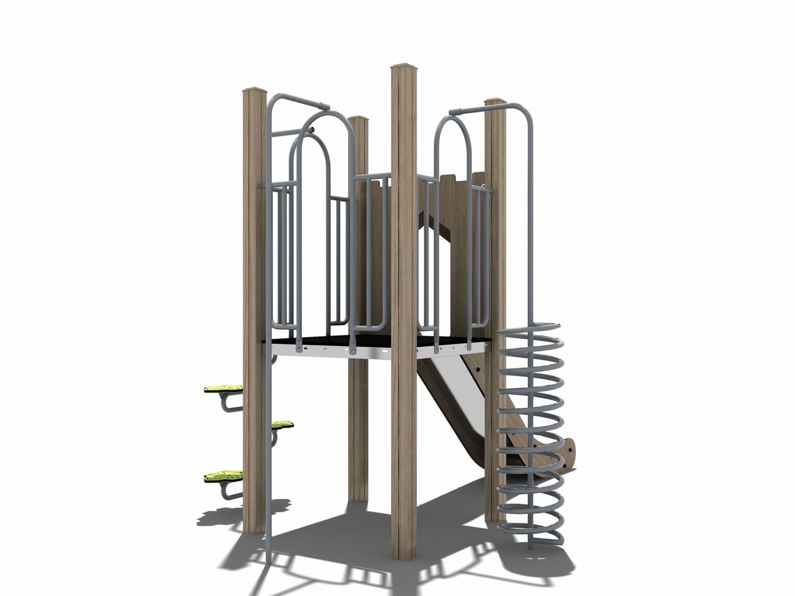 Dit speeltoestel is bijzonder geschikt voor op het schoolplein en in de speeltuin in de wijk. Het is compact van opzet omdat alle speelelementen aan hetzelfde platform zijn bevestigd. Op deze manier haal je alle mogelijkheden uit het platform en bespaar je ruimte terwijl je toch voor optimaal speelplezier zorgt.