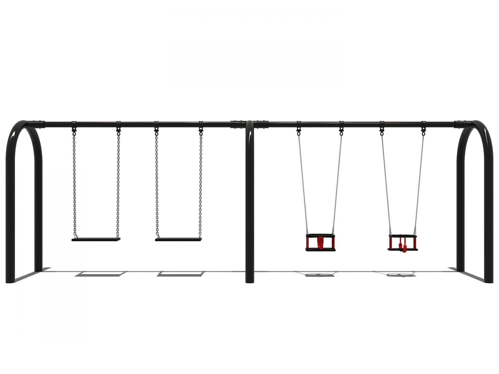 Dit schommelframe heeft een moderne vormgeving door zijn zwarte ronde vormen. Hierop kunnen maar liefst vier kinderen tegelijk schommelen. Je kunt deze schommel helemaal naar eigen wens samenstellen want de schommelzitjes worden niet meegeleverd. Door te kiezen voor verschillende zitjes maak je een schommel voor zowel de kleinere kinderen alsook voor de oudere jeugd. Heb je niet zoveel ruimte of budget, dan kun je ook voor een enkele schommel of dubbele schommel kiezen.