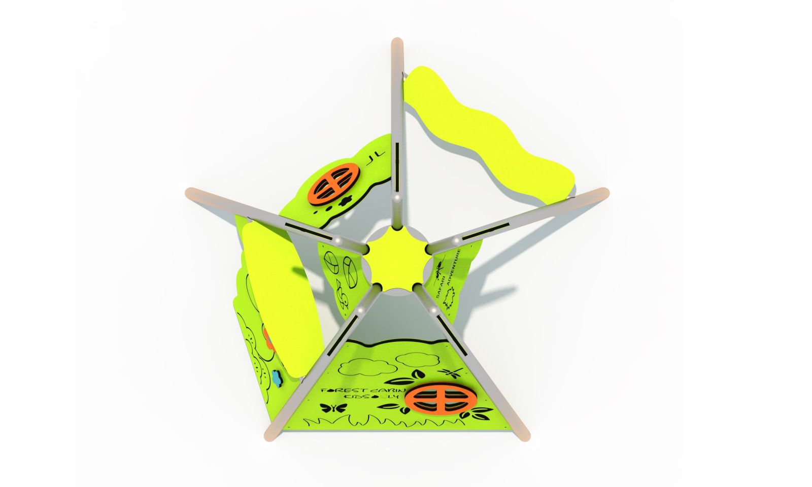 De wanden van dit speelhuis zijn gemaakt van onderhoudsarm HPL en de staanders zijn van gepoedercoat metaal, goed voor jarenlang onbezorgd speelplezier.