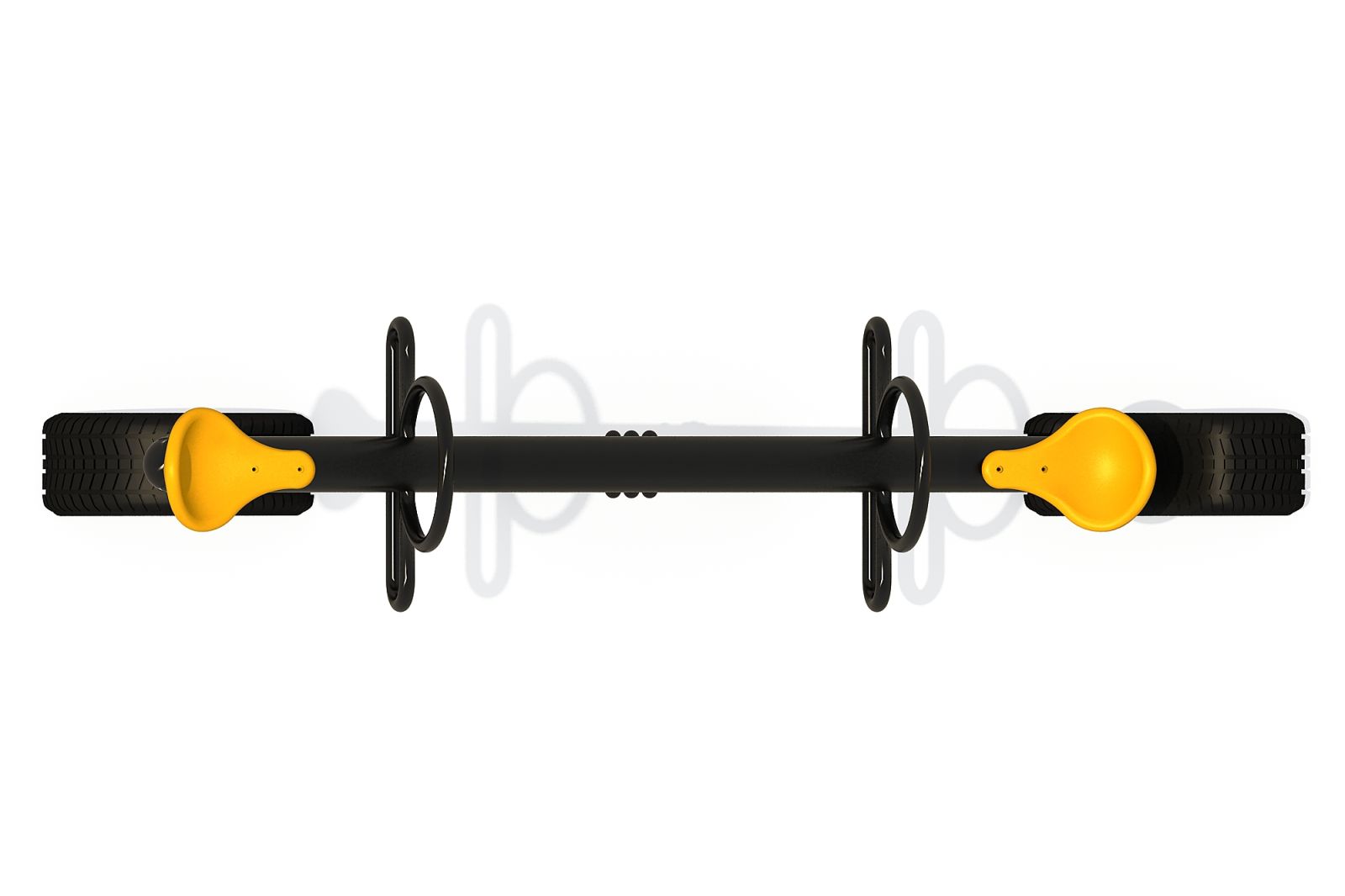 Opvallend aan dit wiptoestel is zijn moderne vormgeving. De zwarte metalen onderdelen zijn gepoedercoat en voorzien van een anti-roest afwerking. De zitjes zijn van kunststof en kunnen in verschillende kleuren geleverd worden. Zo maak je van je wip een speeltoestel op maat.