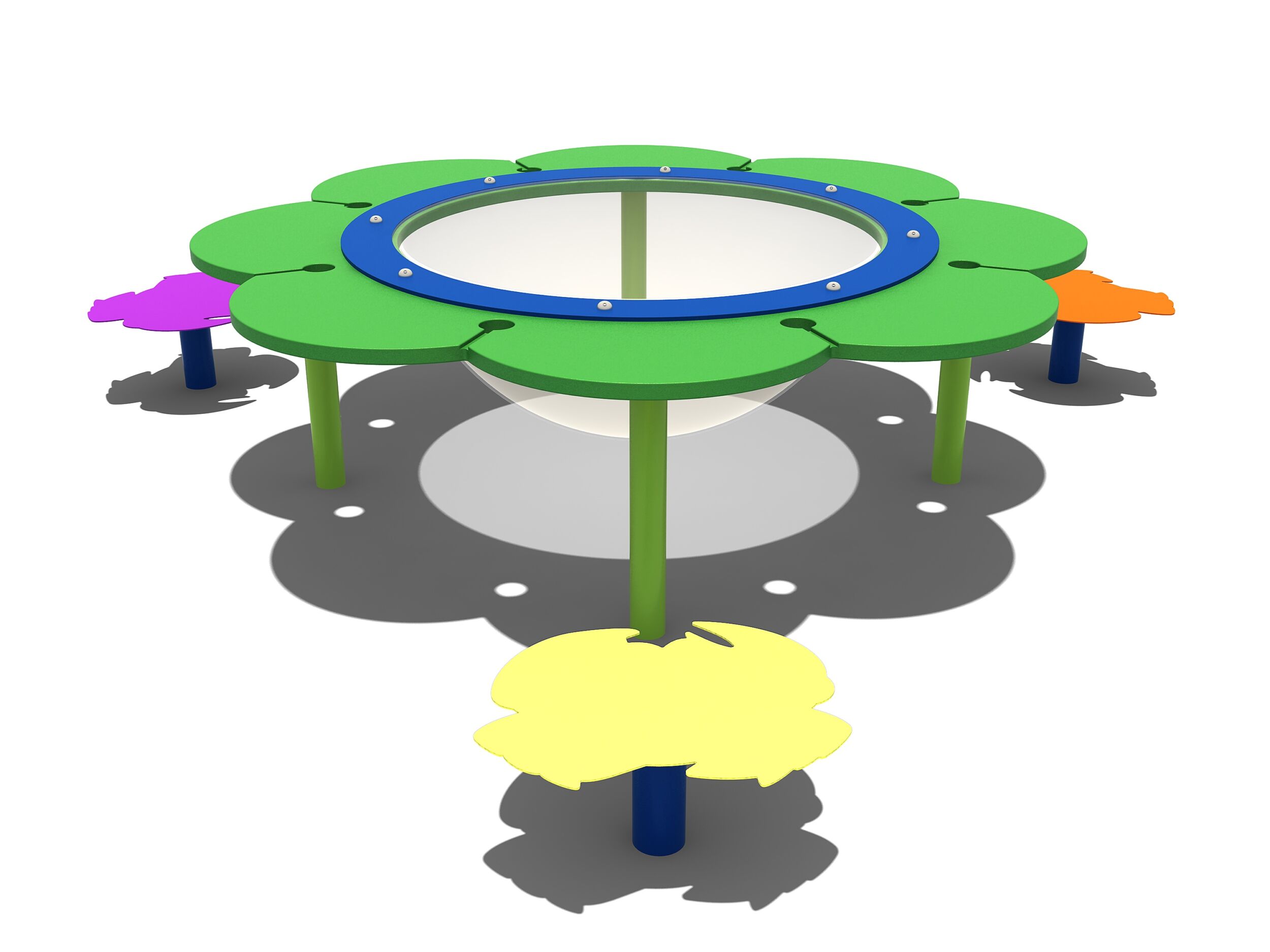 De bloem van deze zandtafel is gemaakt van PE-Polytheen met een kunststof binnenbak. Ook de stoeltjes zijn van kunststof. De staanders van de zandbak en van de stoeltjes zijn van metaal. Deze zandtafel is in verschillende kleurstellingen te koop en komt uit de kleurrijk en duurzaam lijn die staat voor kleurrijke aantrekkelijke speeltoestellen met een lange levensduur.