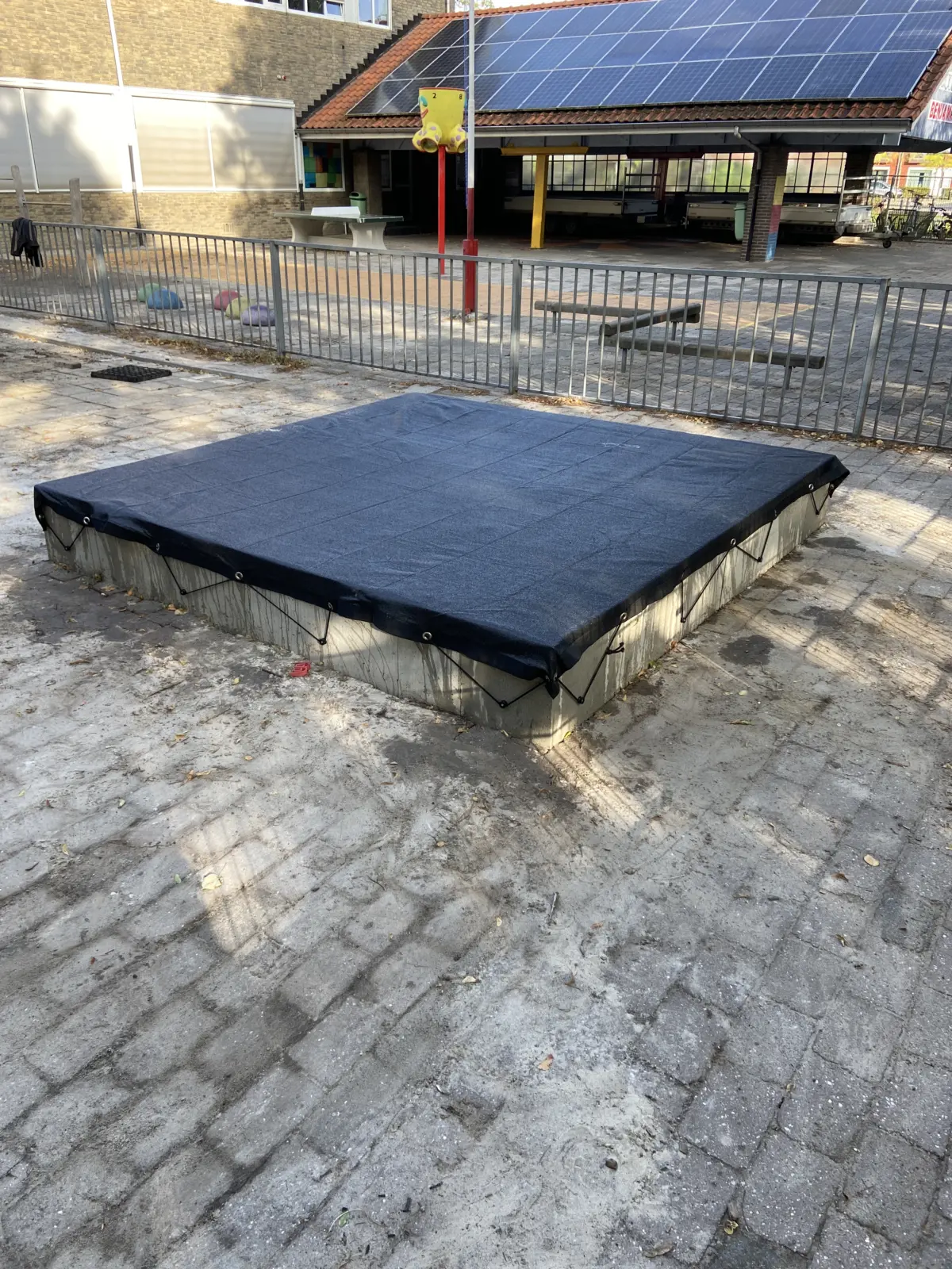 De prijs van deze zandbak is gebaseerd op 2,7 x 2,7 meter en is inclusief de PE bovenlaag.