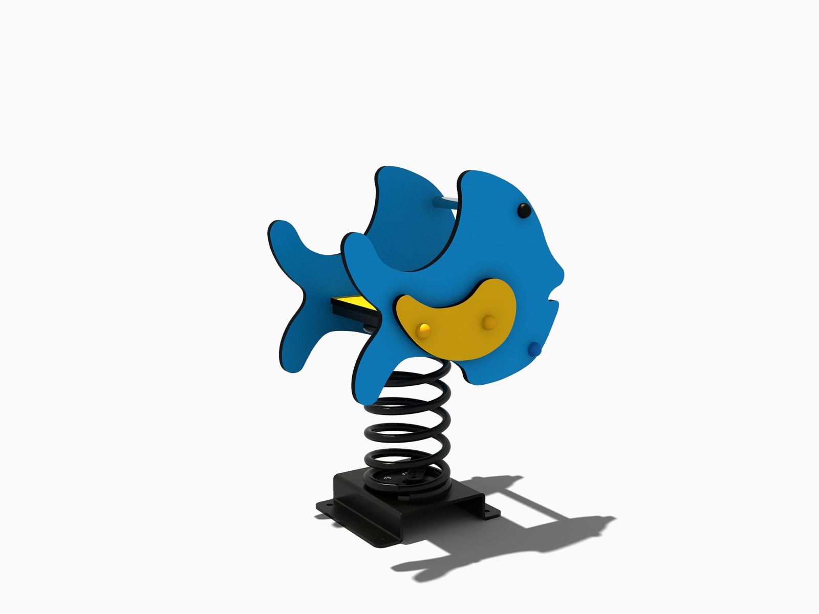 Het bewonersinitiatief Speelveld Oostrikpark is ook met onze TnT 3D-ontwerper aan de slag gegaan en heeft in dit online programma zelf een mooi combinatietoestel ontworpen voor de jongere kinderen. Dit speeltoestel, uit de serie robuust metaal en rvs, bestaat uit twee platformen in verschillende hoogtes. Aan het lage platform zit een stevige trap met leuningen waar je naar boven klimt en via de rvs glijbaan ben je zo weer beneden. Een ideale en veilige weg voor de allerjongste kinderen dus. Het tweede platform is wat hoger en beklim je via de schuine wand vanaf de lagere vloer of je neemt de gebogen slangentrap naar boven. Ook aan deze hoge vloer zit weer een robuuste glijbaan van roestvast staal maar je kunt ook als een brandweerman via de glijstang naar beneden zoeven. De ontwerpers hebben ook zelf de kleuren gekozen voor dit speeltoestel. Frisse kleuren zoals geel, rood, oranje en blauw, die goed opvallen in een groen park. Verder is voor de jongsten een heerlijk veerfiguur in de vorm van een vis neergezet. En ook een schommel met rubberen zitjes mag in deze speeltuin niet ontbreken