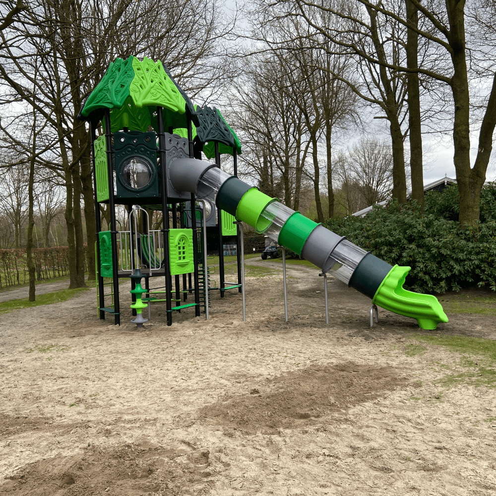Of je nu gaat kamperen, voor een tiny house of een luxe bungalow of chalet kiest, Vakantiepark Latour in Oirschot is de ideale uitvalsbasis voor ontspannende activiteiten. Het vakantiepark is gelegen in de bosrijke omgeving van de Brabantse Kempen en biedt volop vertier aan jong en oud op zowel het park zelf als in de omliggende omgeving. November 2022 liepen medewerkers van Vakantiepark Latour langs onze stand op de Recreatie Vakbeurs in Hardenberg en waren onder de indruk van het grote speeltoestel dat wij hier hadden opgebouwd. En daar bleef het niet bij, want de interesse in dit speeltoestel was gewekt met als gevolg dat de jonge gasten van Latour al dit vakantieseizoen volop kunnen genieten van het nieuwe speeltoestel op het vakantiepark.
