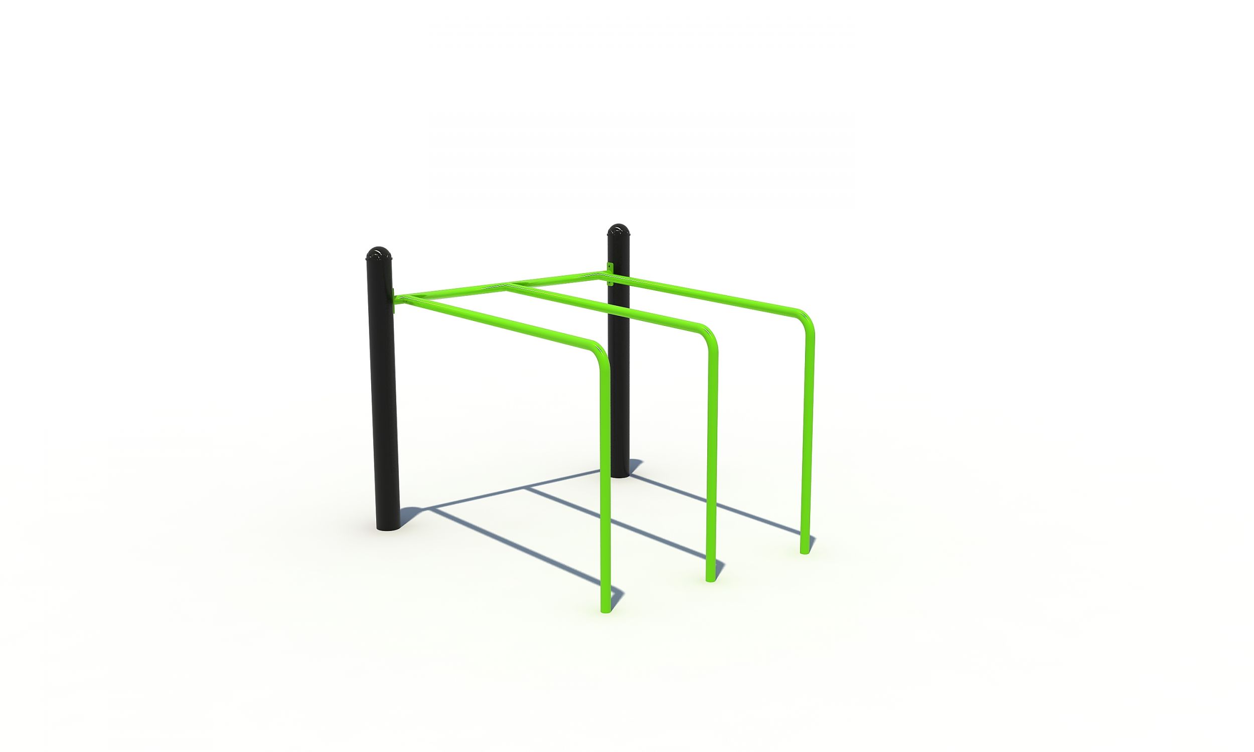 Deze dip bars bestaat uit drie horizontale leggers gemonteerd tussen twee stevige staanders. Het sporttoestel kan vrijstaand geplaatst worden en neemt weinig ruimte in. De dips zijn een ideale basisoefening in iedere calisthenics training. Dip bars worden gebruikt om kracht op te bouwen in de bovenlichaamspieren.