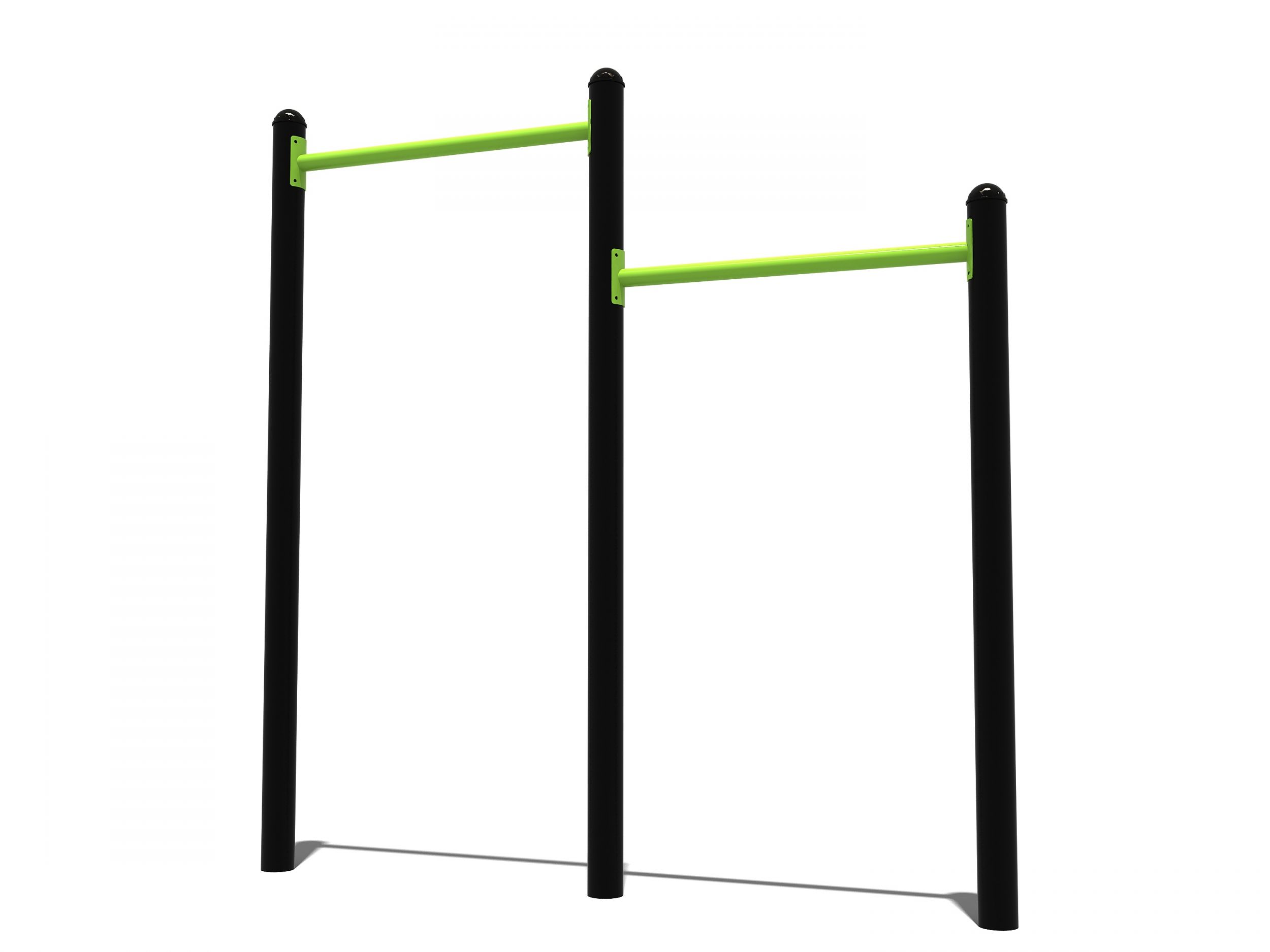 De dubbele rekstok bestaat uit twee horizontale stangen die op verschillende hoogteniveaus zijn gemonteerd tussen verticale palen. Deze 2 delige rekstok voor buiten is geschikt voor vele oefeningen waaronder pull-ups, chin-ups en muscle-ups. Op dit multifunctionele sporttoestel kun je spierkracht. mobiliteit en uithoudingsvermogen naar een hoger niveau tillen. Of je nu begint met calisthenics of al een geoefende sporter bent, deze rekstok biedt vele mogelijkheden op verschillende (hoogte)niveaus.