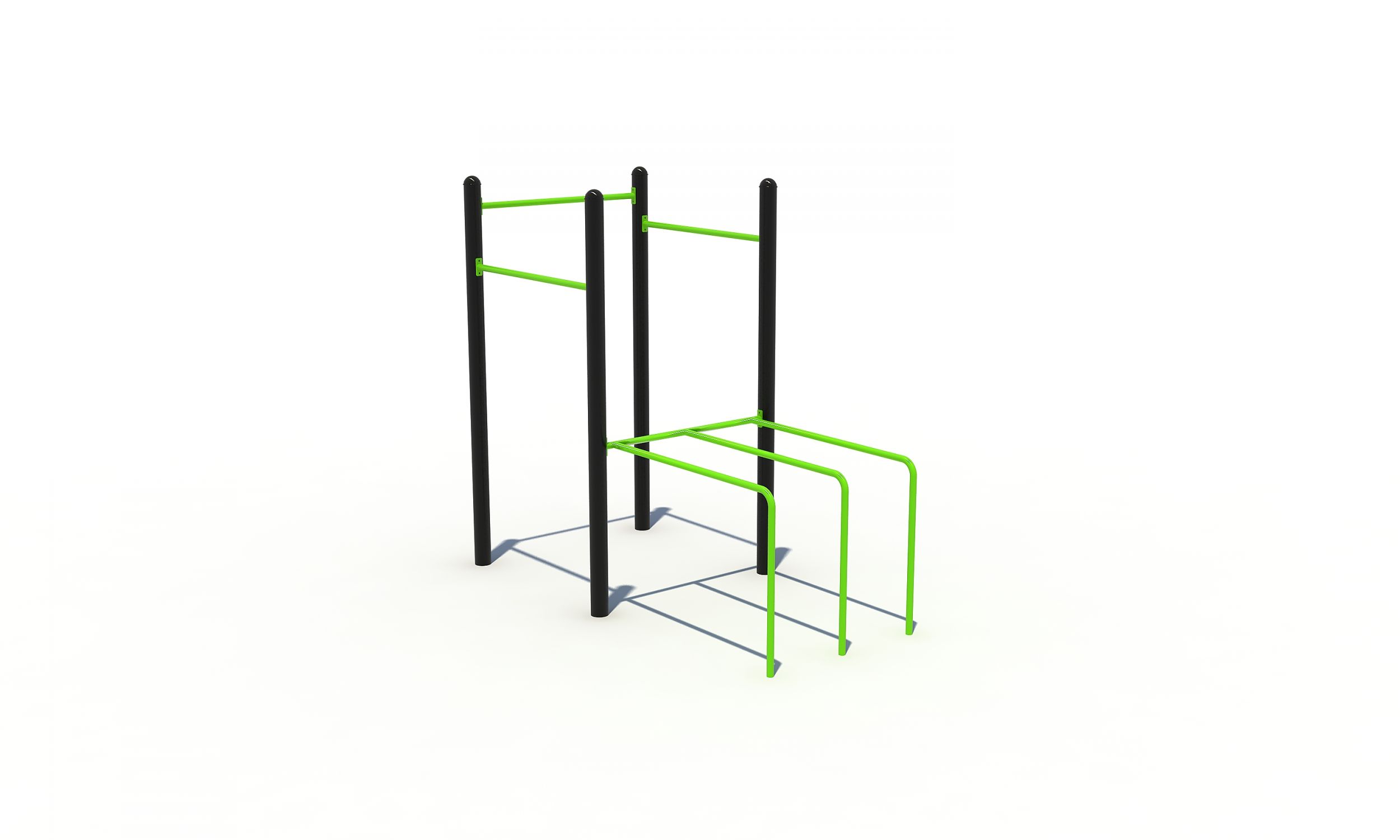 Met een combinatie van een rekstok en dip bars bied je sporters een multifunctioneel outdoor calisthenics toestel voor een vrijwel volledige workout van het lichaam.