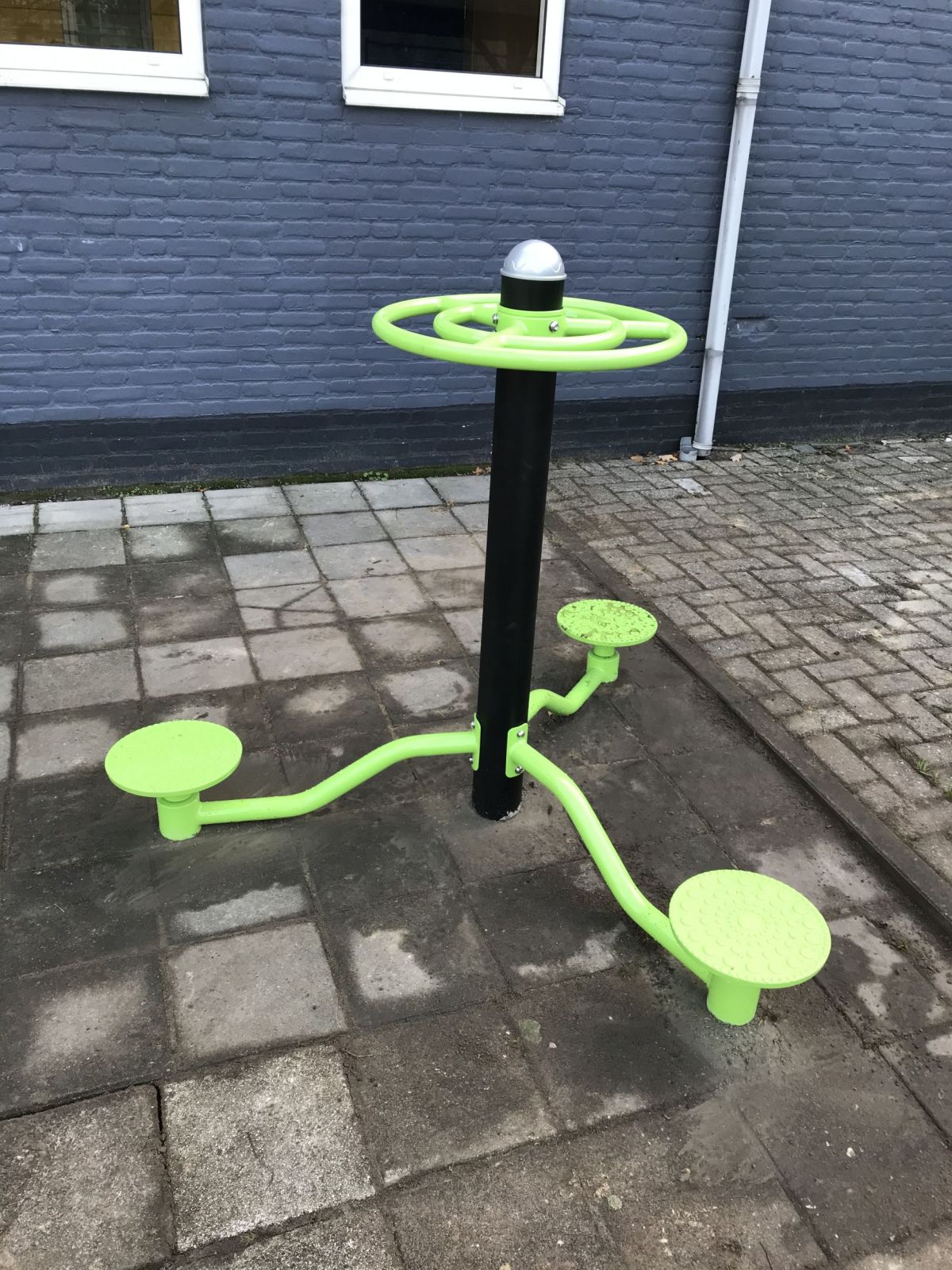Deze Taille Twister is een outdoor fitnesstoestel dat door drie personen tegelijkertijd gebruik kan worden. Door de snelle rotatie van de heupen wordt vooral de opbouw van de buikspieren effectief bevorderd en hiermee creëer je een slanke taille.