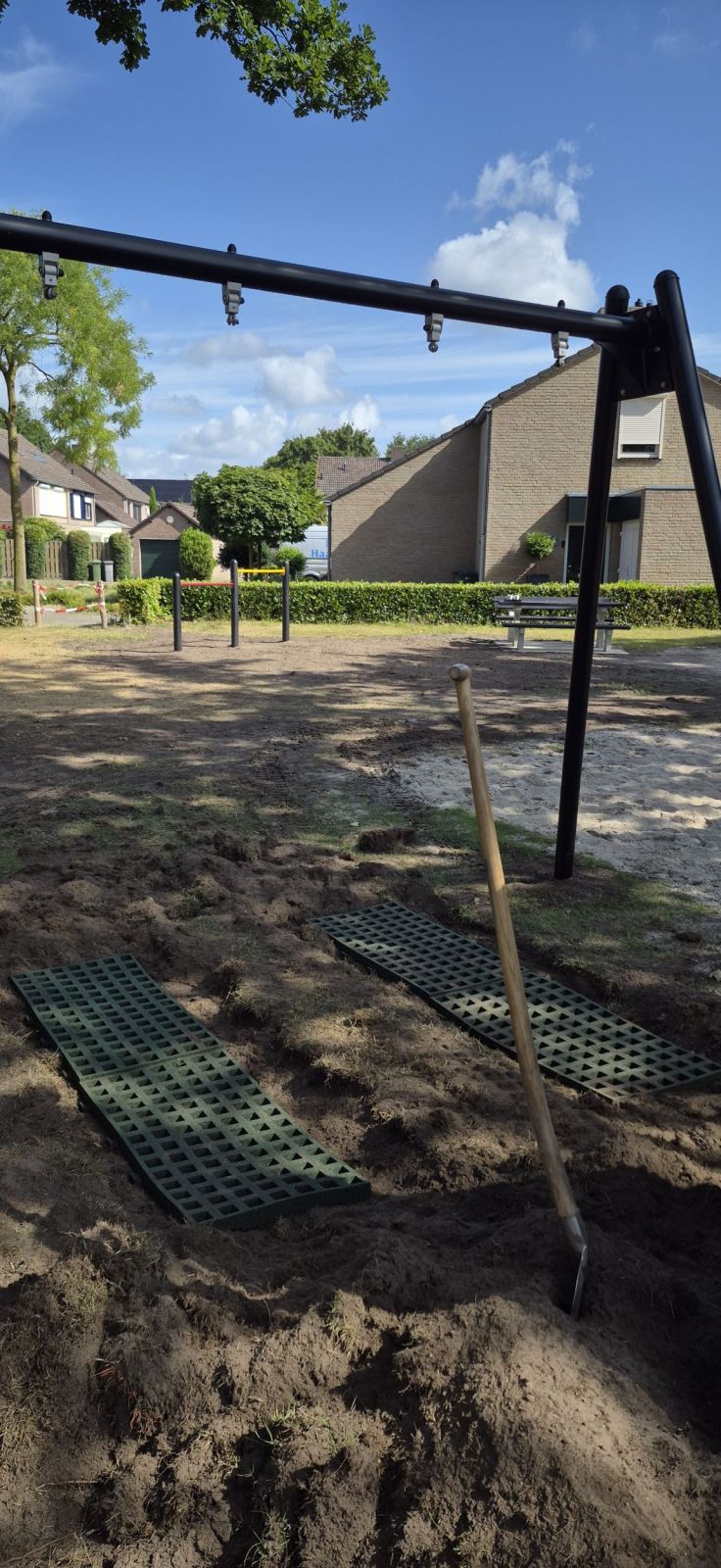 Ook zorgen de grastegels ervoor dat er in het plantsoen een hogere valhoogte gehaald kan worden.